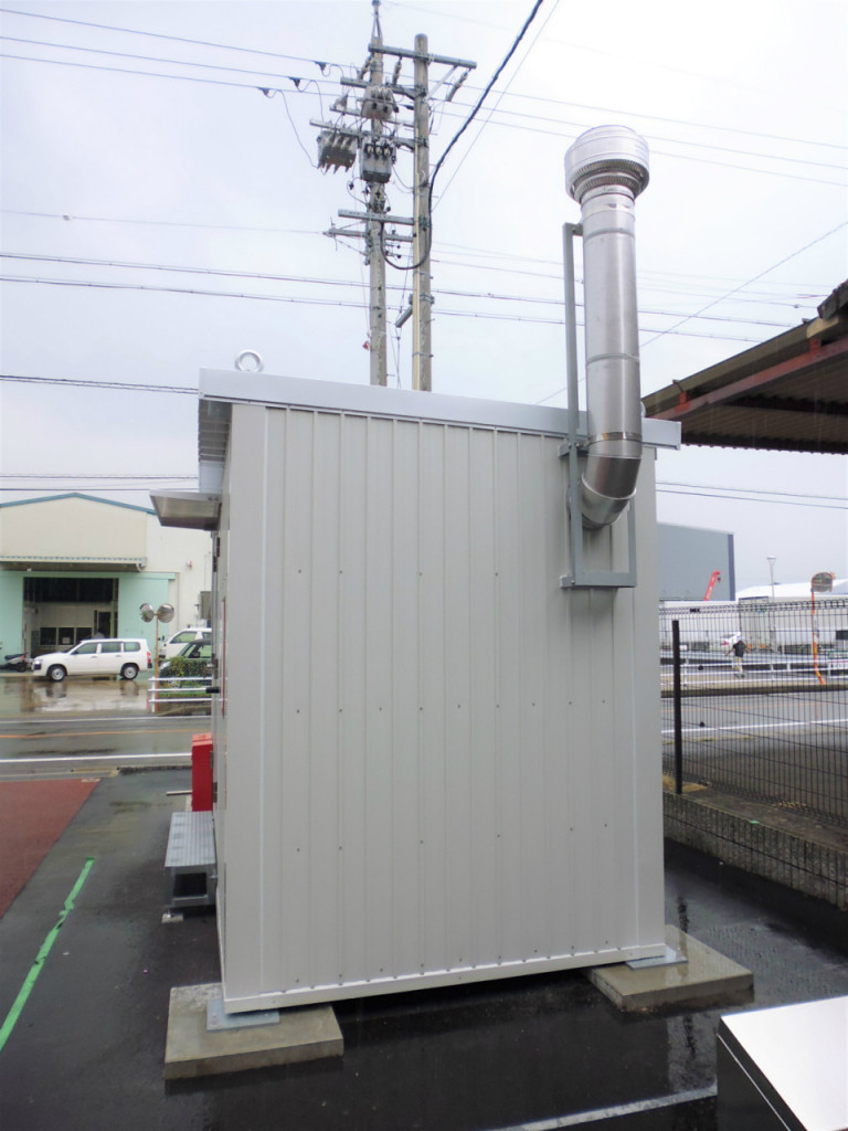 | 備考 | コンクリート板使用タイプ。 設置場所地盤に勾配があった為、コンクリート板を4枚追加しております。 また、耐火溜桝仕様、ダクト延長、消火器追加、排気設備変更の指導がございましたので、一部仕様を変更しております。 |
